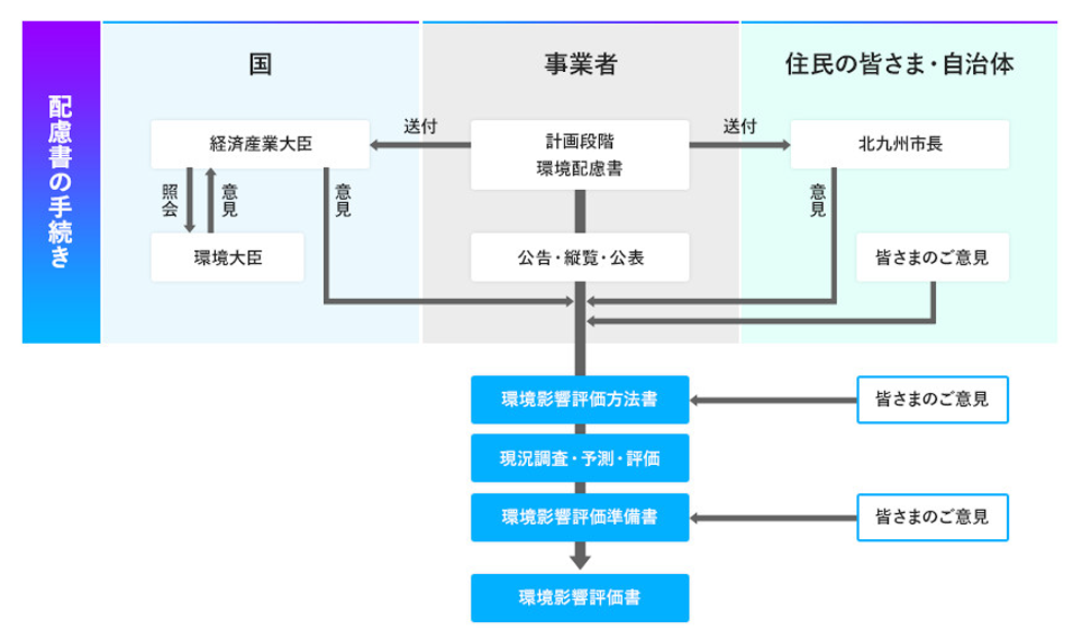 配慮書について、環境保全の見地からご意見をお持ちの方は、当社へご意見をお寄せいただくことができますので、以下に記載している配慮書の公表方法及び意見書の提出方法をご覧ください。