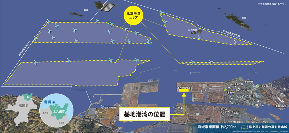 当社は、現在、北九州市若松区沖の響灘において、北九州響灘洋上ウインドファームの建設を進めています。今後、本格化する風力発電設備の設置及び維持管理には、北九州港のような重厚長大な資機材を扱うことが可能な地耐力や広さを備えた埠頭が必要不可欠です。そこで、今回、北九州港基地港湾の賃貸借契約を締結したものです。