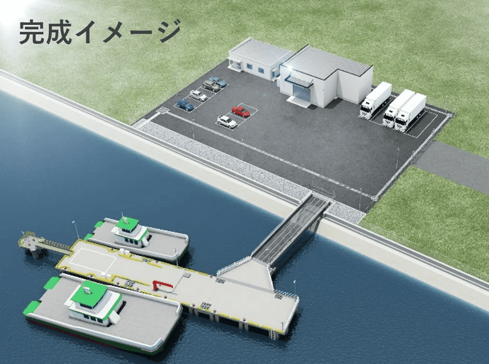 陸上で製作された上部工は、クレーンが搭載された「起重機船」にて海上に運び、あらかじめ打設された杭と接続することで桟橋が完成します。