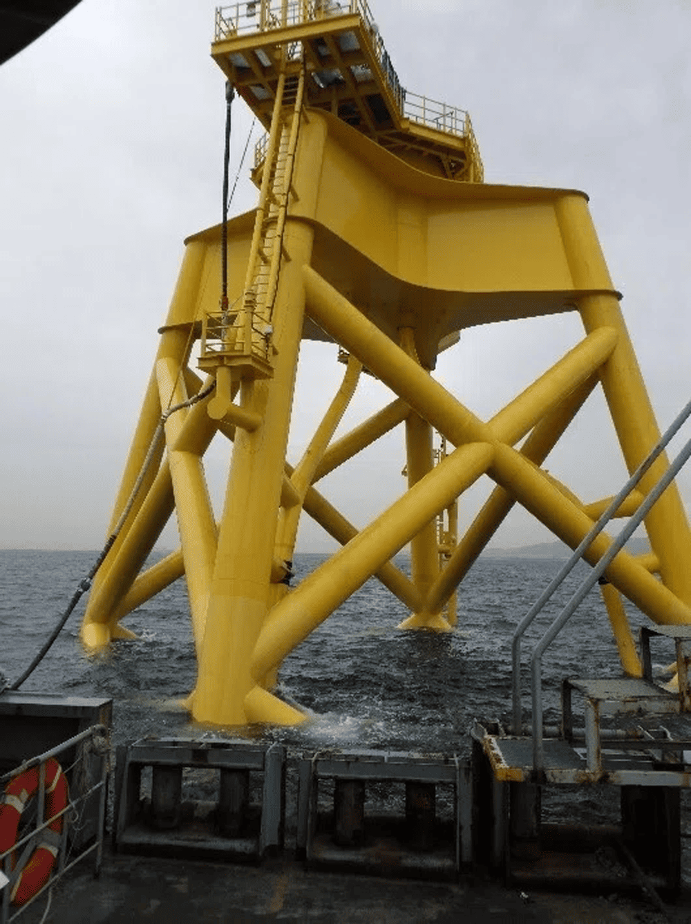 風車基礎工事において、打設した基礎杭と据え付けたジャケットとを固定するグラウト(接合材)の充填を開始しました。