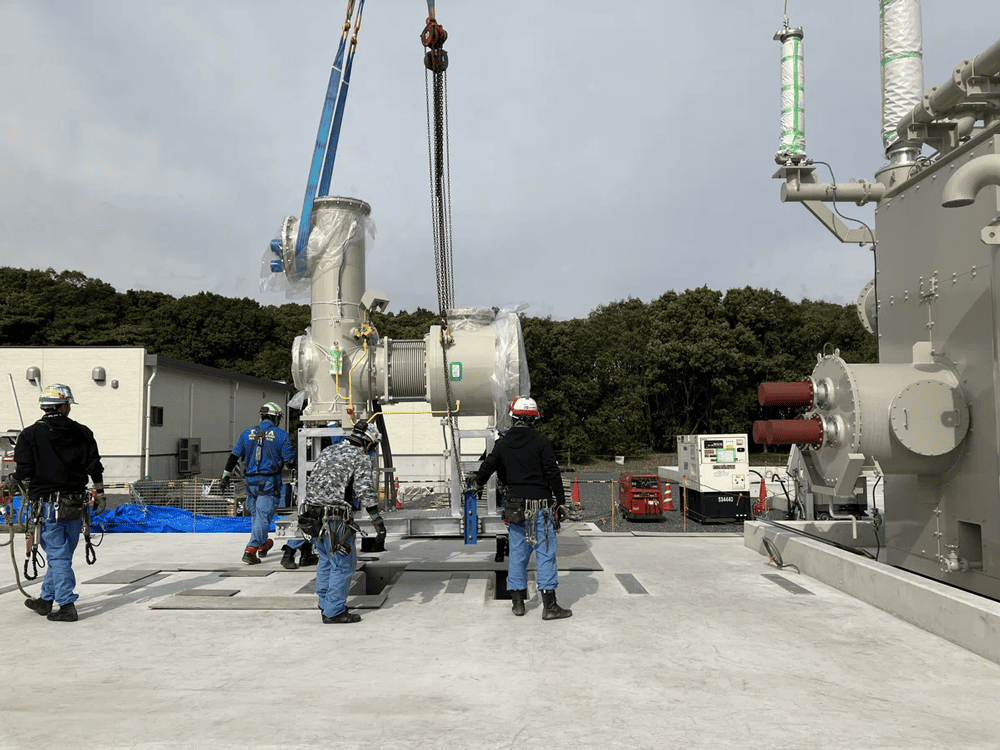設置後は、変圧器とGISとを接続する作業を行っていきます。
