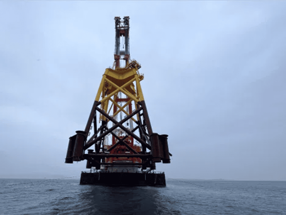 ジャケットの吊曳航と据付を開始しました|ひびきウインドエナジー株式会社