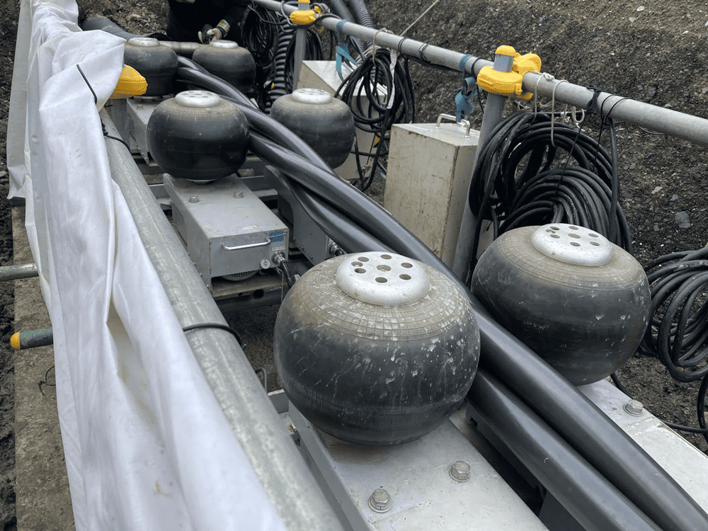 ケーブルへの張力が1t以上に及ぶことがあり、また、ケーブルの被覆を傷つけないようにする必要がある作業でもあることから、緊張感を持って、慎重の上に慎重を重ねて敷設を行いました。