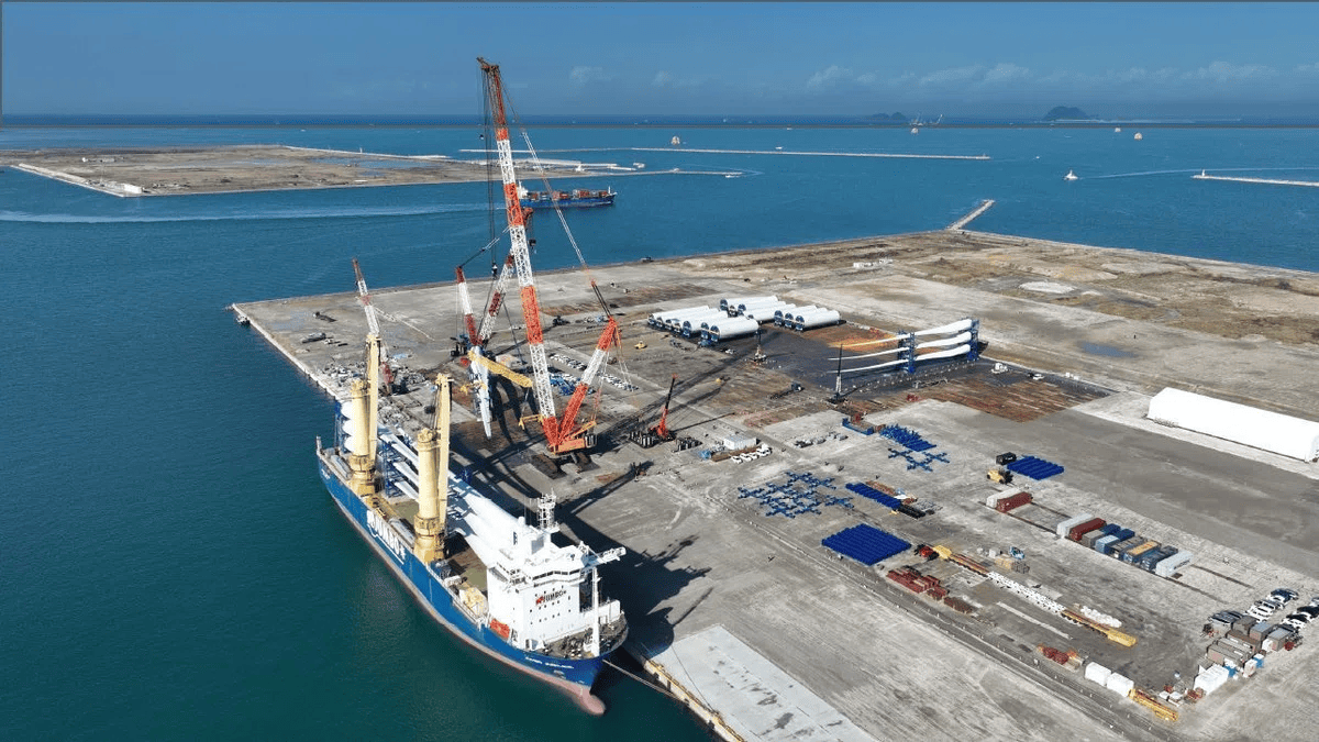 来年度の「風車据付工事」に向けて、海外で製造された風車部材の受入れを進めています。