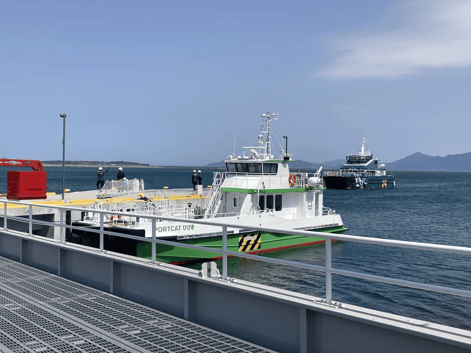 今後は、「PORTCATひびき」と「JCATひびきⅡ」の2隻で洋上風車のメンテナンス等を行っていきます。